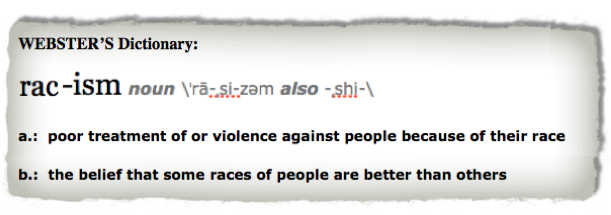 To bring further clarity to this matter we need only look as far as the fact based scientific definition of the term as has been provided by Behavioral Scientist Dr. Frances Cress Welsing that “Racism” is a White Supremacy POWER CONSTRUCT. One utilized by those who classify themselves as Non-minorities or White and possessing the ability to oppress and suppress the abilities of others classified as non-white Minorities. This expert’s scientific definition as you can now see is quite different than being or acting prejudicial, “simply not liking or mistreating a particular group because of the color of their skin”. What it defines is a far more insidious POWER STRUCTURE only capable of being utilized or effected by those who actually possess the POWER and MEANS to dominate, oppress and/or suppress the functional abilities and well being of a less empowered sector of our social construct. And through this we’re also able to see wherein such nonsensical terms such as “Reverse Racism” are but oxymoronic in nature. In fact it is impossible for any individual or group without the POWER to oppress, suppress and or effect or inflict its will upon another through the Power Dynamic of “Racism”. And as we can observe from this brief example, the word race as used within Webster’s above incorrect and misdirected definition is in fact within itself a subtle yet perfect example of the Power Dynamic “Racism” in full effect.