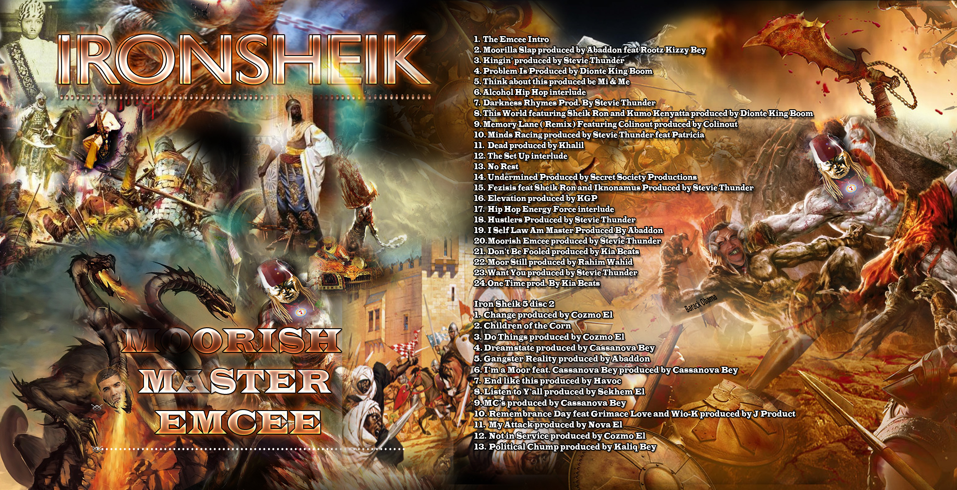 The City Critic’s Preview Review: This NEW MASSIVE DOUBLE ALBUM ” MOORISH MASTER EMCEE” (The next sagacious installment by IRON SHEIK, Now Available For Direct Download) is in short: a sorely needed, brilliantly delivered social antipastos; slicing, exposing and slaying corrupted deceptors with a uniquely righteous doubled edge sword of Unmerciful Truths and Lyrical Justice as only IRON SHEIK so dares to unleash. Let’s just say, . . Heads Do Roll! Young Moors and Old Alike Take Note: This infusion is far more than a highhandedly unmasking of the perpetrating pimped-out fiat grabbin betrayers of Hip-Hop, this pristinely engineered digital masterpiece stands in its poetic musicality heads and shoulders squarely among the uncompromising warriors ranks of old (à la Makaveli/Tupac Shakur and Christopher George Latore Wallace a.k.a “Biggy”). With infectious rhythmic foundations from astutely melodious to surgical mayhem interlaced amidst the methodical metalogic tapestry of wisdom rich veracity, this work of art will stand undoubtedly as a deed truly worth emulating In this reviewer’s most honest opinion, this greatly anticipated release (which I guarantee will deliver far more than your money’s worth) is perfect for Digital Download in that it’s literally crammed to its burning brim with track after track after searing track of unrepentant blazing truths too hot for wax. My suggestion, buy it today! VISIT WEBSITE TO PREVIEW ALBUM TRACKS AND CHECK OUT MORE IRON SHEIK MUSIC VIDEOS & Patronize To Support Moorish Music of Value.