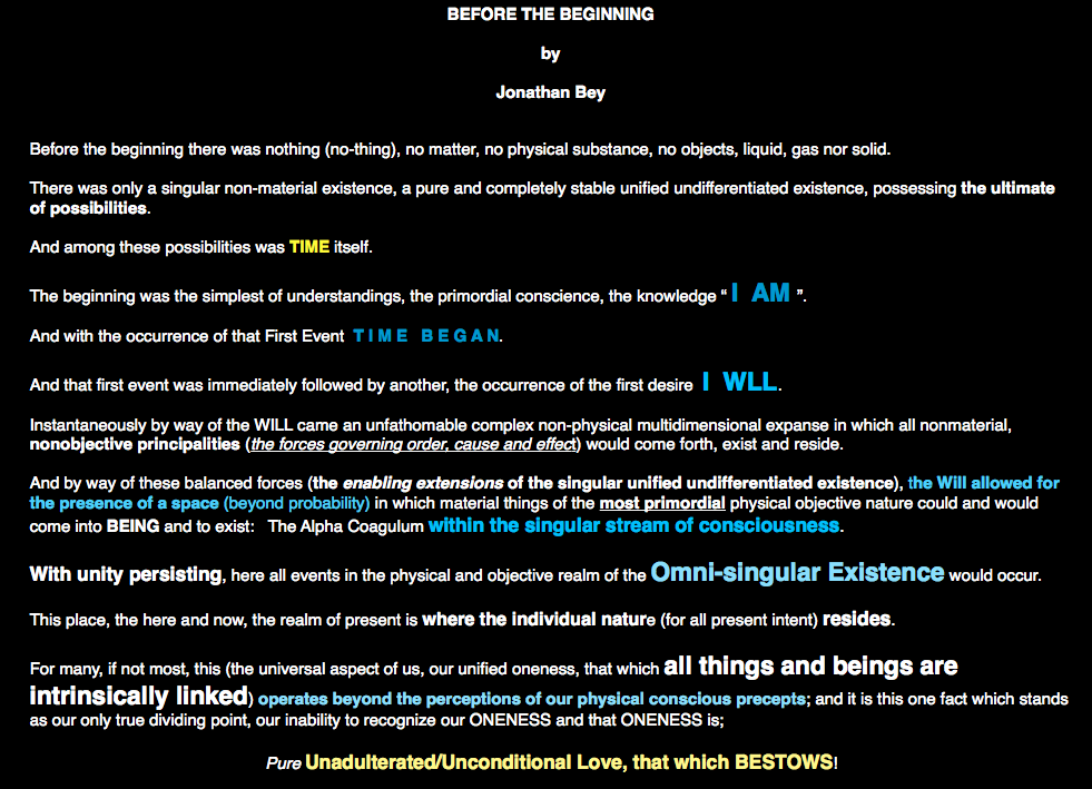 BEFORE THE BEGINNING – The following is an audio presentation which explains The Birth of Allah (ALL LAW),
