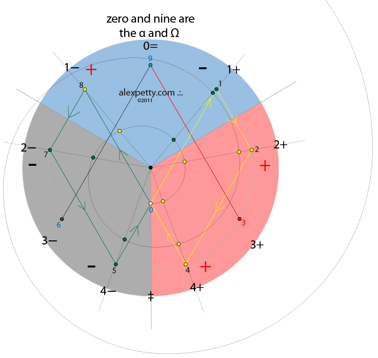 If we were to ponder creation mathematically we might conceive a void as nothing/”No Thing” which representatively we have depicted historically as “0” (zero), which,. . if out of it there were to emerge any event, occurrence or singularity (some “thing” emerging out of No-thing), that “being”, that node could logically (and has been historically/customarily) be represented as “1“. Because this singularity occurred in a space occupied by No Other “Thing”, “1” now (an Objective Reality) logically represents “ALL”. And, since the “Subjective” Void or “0” which proceeded that event, “0” can not logically exist in the presence of a “Object-ive” singularity (because the mere nature of its existence would constitute the existence of some-thing beyond “The All” which logically could only be perceived as a “Duality”, a change/manifestation of some sort was required. With logic persisting and “0” having No “Thing” by which to effect “1” (e.g.: 0-1=1) the only option would logically be that power of “1” effect “0“, and since “1” and “0” (10) represents our only operative factors “1” must effect “0” with cause and effect/embracing while taking away (1-10=9) creating, evolving and devolving to manifest or bring into being the note or number “9” (which may also be expressed as (3+6 or 6 +3)) completing the effective circuitry of subjective reality (as would be represented by number). With logic persisting and governed by the rule of polarity, cause and effect, the equal yet opposite manifestation of the Objective nodes harmoniously came into effect (1,2,4,5,7,and 8) which may also be numerically represented as relative Objective counterparts (1+2+4+5+7 +8 = 27 or 2+7 = 9) to the Subjective/Spiritual 3, 6, 9. [ Like Th Pointer Sister’s Song: “3, 6, 9, the Goose drank the wind. The Monkey chewed tobacco on the street car line. The line broke. The Monkey got choked and the all went to heaven in a little row boat (a vessel powered with harmonious unity, positive energetic ACTION) – Clap Hans – 1, 2″ (or “when two or more come together (in my name), there I am (the spiritual resonating energy of our ONE and only Divine Creator!] See how things of a spiritual nature (which have always been right there) reveal them self clearly once under stood?